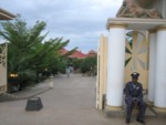 都心からダウンタウンに入るLATEMAロードを真っ直ぐ進むと通りの突き当たった(RIVERロード)のT字路正面にある。バスターミナルからは9番マタトゥ終点(ダウンタウン内)かタクシーで15分程度。。