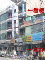 スズキの乗降場所ラジャバザール・フォワラチョークを東のイクバルロードへ進み、2本目の大きい道(ゴールデンカレッジロード)を右折し2個目の大きな交差点の南東角から2軒目にあるガラス張りのビル2階。ビルには「HOTEL」とだけ書いてある。鶏肉がぶら下がっている店の隣が入口。宿を左に出て5分歩いたシャンハイプラザ2階にネット屋有。15RS/1h、Windows98。 |