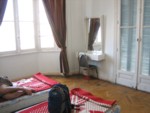 カイロ中の安宿を探索した結果ここがベストと判断をしてお引越し。場所も中心にあり、眺めもバツグン、何よりも「健全」である(笑)。朝日が宿全体に入るので宿泊者はみんな早起き。上記安宿ビルもある意味居心地はいいが、健全パッカーはやはりこちらだろう。中東一遅いと言われる木製エレベーターは8階まで上がるのに1分以上かかるがなかなか味わいがある。いつ壊れてもおかしくない。シェアだったのでリッチにベランダ付きツインを利用したがメチャメチャ広い部屋だった。