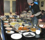 3JDでブッフェスタイルの夕食が食べれる。野菜が中心だが種類は多い、周辺は物価が高いのでお得感はあるかも。