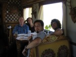 今回2度目の国際列車に乗れる日が来た。 北京から国際列車で30時間1,570km、ルートとしてはちょっと寄り道だが絶対行きたかった国モンゴルへ向かう。 列車の旅も随分慣れてきたが、いつも乗車から出発までの時間は緊張する。 個室の場合同じ部屋をシェアする人々によりその旅の良し悪しを大きく左右されるからだ。 今回の移動は30時間あり、さらに国境を越えるので余計にドキドキする。 事前に硬臥のチケットを購入した。中国国内と同じ6人部屋だと思っていたが、実際に入ってみると4人部屋だった。 以外に余裕のあるスペースが確保でき気分がノッてくる。 先に乗車して迎えてくれたのは初老の白人。 「Welcome to our room!」 感じの良い人で安心する。良い旅になりそうだ。 彼の名は「ウォルター」。ロシア系カナダ人で冷戦後10年はキューバで暮らしていたらしい。自分では元KGBだと言っていたがホントかジョークかを見極める英語力はワタシに無い・・・ 何故か彼自身のアドレス入り2006年手帳を貰う。 次に入って来たのはオーストラリア人の「ブレッド」。すらっとしたハンサムで、ケアンズ在住。モンゴルの友人に会った後シベリア鉄道でモスクワに行くらしい。 最後にやたらと大荷物を抱えて入って来たのはアメリカ人大学生の「アン」。ミシガン州立大学で自然科学を専攻しており、なんとモンゴル語がペラペラ。2ヶ月現地で調査活動をするらしい。持ってきたバックは合計6個!「先に送っとけよー。」と後でみんなからツッコまれていた。 全員欧米人でちょっとホッとする。。。 だって中国人すぐ部屋を汚くするからさー。ひまわりの種とか床にペッペ吐くし。 メンバーに恵まれ、ウォルターを中心に数時間喋りっぱなし状態が続く。私は最初の1時間で緊張が切れ、あとは「アハー」とウナヅクのみ。 話が難しくなりあまり参加は出来なかったが途中で夕食を食べに行ったりと和やかな時間が過ぎる。 この鉄道には珍しい特徴があり、中国とモンゴルは列車の幅が違う為国境付近で車輪を載せかえる作業を行うらしい。しかもそれを乗客が乗ったまま行うということで、マニアなら一度は乗ってみたい路線らしい。 ![]() 夜中に近づき中国の国境駅「二連浩持(エレンホト)」に着いた。 ここでは出国審査が車内で行われる。全員が席に座らされ税関員が回ってくるが特に問題なく終了。 時刻表を見るとココの停車時間は2時間30分!30分で出国手続きは終わってしまったので、あと2時間も暇だ。 アンが乗務員にホームに出てもいいかと聞くと、OKだという。我々に続いて十数人の西洋人が外に出た。この列車は冷房が無い為、室内が蒸し暑いからだろう。 多少雨が降ってきたが外で雨宿りした方が涼しいので駅舎の隅で雨宿りしながらお喋りタイムを楽しんでいた。 そこにいたかなり陽気なオーストラリア人夫婦6人組と出会う。話も弾む。 ![]() しかししばらくすると、 ガタッゴト、ガタッゴト・・・・ 列車が動き出してしまった。(((( ;゜д゜)))) ![]() なぜ?あと2時間あるじゃん! パニックになった数人は走って列車に飛び乗った。 しかしドンドン列車は走り去る、我々は走っても追いつかないだろう。 アンにどうしよう?と言うと、多分大丈夫じゃない?多分・・・と言う。 さらに数人は列車の後を追って線路に出た。暗闇の雨の中列車を追っていく白人たち。 取り残された10名は冷静にミニ会議を開いた。 「多分車輪を付け替えて戻ってくるよ・・・」とブレッド。 「そのまま行っちゃう可能性は?」と心配するウォルター。 「荷物全部車内に置いてきちゃったー!」とオージー組の代表ローズマリー。 そうこうしていると、列車は音さえもしないくらい遠くへ行ってしまった。 ・・・・・・・・・ まぁ、考えてもしょうがないか。取り合えず出発時間までは待つことになった。 雨が強くなり全員が駅舎の隅に重なる。中には鍵がかかっていて入れない。 真っ暗なホームに雨の音だけが響く。霧がかっていて、人は我々以外誰も見当たらない。 ちょっとした遭難気分だ。 陽気なオージー組は元気に話をしだした。日本のどこからだ?日本は高いよ。おれの友達は日本に居るよ。 ・・・・・ 30分が経過、この辺りはモンゴルに近いので夜冷え込む。オージー組は大半が半袖なので身を寄せ合って暖まっている。 ![]() ・・・・・ 1時間が経過、ホームの端でフルーツを売っているとの事でメンバーの一人が買いに行く。しかし誰も中国語が分からないので列車がいつ戻ってくるかは不明だ。 ・・・・・ 1時間半が経過、アンが心配そうな顔つきで「ちょっと周りを見てくる」と言って雨の中走っていった。 全員に少しずつ緊張感が高まる。 ローズマリーが私に聞いてきた、「あなた心配?」 私は答えた、 「It’s OK ・ ・ ・ ・ ・ Maybe・・・」(-.-;)y-~~~ 「Why Maybe!」 ローズマリーは笑いながら発狂して私の頬に両手を押し付けてきた。 やはり彼女も心配らしい。 ・・・・・ 数分後、ホームの逆端から多数の人達がゾロゾ