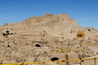 イラン東部のバムという街に、以前はイランで一番の見所だとも絶賛された「アルゲ・バム」という有名な遺跡(廃墟)があった。 巨大な城壁で囲まれた城と城下町はその多くが16世紀〜17世紀のサファヴィー朝の時代に建てられた。しかし1722年のアフガン軍侵攻により人々は町を放棄。その後人々は城下町に戻ることなく新しいオアシスに移り住み、アルゲ・バムは廃墟となってしまった。 歴史的にはほとんど無名の城下町だが、泥で出来た巨大な廃墟は多くの旅行者を魅了し、どのガイドブックを見ても「イランベスト3」に入るほど人気の観光地だった。 しかし2003年12月26日、ちょうど日本ではクリスマスの余韻が醒めた頃、市民が寝静まる午前5時30分にこの街をM6.3の直下型大地震が襲い、街は遺跡もろとも粉々に破壊されてしまった。元々日干しレンガで造られた家々はことごとく崩れ、新市街で60%・旧市街の街はその90%が倒壊。10万人の人々が住んでいたバムとその周辺10kmで実に4万人を超える死者を出す大惨事になった。 当時私はニュースで「イランで街と遺跡が消えてしまった」という報道を耳にしたのを覚えている。 その半年後にバム遺跡は「危機遺産」として世界遺産に緊急登録され修復作業が始められたが、元々泥と土壁で作られていた遺跡は勿論原型がわからないほど粉々に崩れており再建には途方も無い年月がかかるとのことだった。 旅行者は口々に「バムは終わった」と結論付けた。 それから2年後。 いったい遺跡はどうなっているのだろうと想像を膨らませながらパキスタン国境から約400km土の荒野を進んだバムの街に到着。 幹線道路沿いのアルグ広場でバスを降りる。本来はバスターミナルがあるはずだが、そこは地震で全壊してしまったため、コンテナを店舗代わりにしたバス会社が並んでいた。2年たってもまだ状況が良くなっていないようだ。 そのまま有名な安宿「アクバルツーリストイン」というゲストハウスへ行く。そこも勿論地震で旧建物は全壊してしまい、地震後1年間は何とテントでGH営業をしていたという強者オーナー「アクバルさん」が経営している安宿だ。今年の夏(4ヶ月前)からはプレハブを建て営業をしている。 彼はとても63歳に見えない元気でマッチョな男性で、昔イランのボクシングチャンピオンだったらしい。そこの夕飯を食べるときにはいつも「これを喰えば明日の朝には俺みたいにマッチョになれるゼ!」を言いながら筋肉ポーズをする気さくなおっちゃんだ。 プレハブの横には地震で壊れた建物の残骸がそのまま残っているのだが、感じたそのままの感想を言うと、「見事なまでの崩れ方」である。アクバルさん自身も生きていたのがラッキーだと言っていたが、その言葉にものすごい重みを感じた。 翌日は朝から旧市街とアルゲ・バム遺跡を観光。 町には貨物用コンテナを店舗代わりにした商店が並んでいた。その後ろには崩れっぱなしの建物が残骸として生々しく残っているところが多い。再建しようにも持ち主を失った建物が多いのだろう。崩れかけた壁にスプレーで大きく文字が書かれている。私はペルシャ語を読むことができないが、生き残った被災者のご家族が連絡手段として書いたのだろうか。 ![]() 道端には2年前からそのまま放置された車が未だに多数路上駐車されていた。その殆どがエンジンなどのパーツを取られ、ボディだけが残されてる。廃車同然の外観とは対極的に、運転席には毎日使用していた事がうかがえる装飾品がそのまま残っており、座布団などの上には2年分の砂埃が積もっていた。 ![]() 町の復興はまだ2・3割といったところだろうか。ようやくテント生活からプレハブになったレベルで、まだサラ地状態の空き地が目立つ。アルゲバムまでは宿から約2.5kmあるが、中心街を歩いたにもかかわらずそれほど沢山の人とはすれ違わなかった。 町の北端にあるアルゲバムに到着。 巨大な遺跡を囲む城壁は何とか形を保っているが、入り口になる南門は完全に崩れており、門の跡は壁が崩れないように補強されている。 ![]() 以前は高かった入場料も今は要らず無料、遺跡を観るというよりは、工事現場を見にいくという感じ。 遺跡内は真ん中のメインストリートのみ一般人が通れるように道が作られており、遺跡のメインになる城部分の手前まで見学が可能。 黄色いパイプで遮断された通路の外は文字通り一面瓦礫の山。一応地震前の遺跡見取り図を持っていて、それには居住区・バザール・兵舎などの位置が記されていたのだが、何処がどこだかさっぱりわからない状態だった。 一応住居地区跡・・・復旧工事は進んでいるのだろうが、パッと見30人くらいの作業員が手作業で工事をしていた。その数は巨大な敷地を整備するには余りにも少なく、このペースだと100年位かかってしまいそうな勢いだが何とかがんばって欲しいものだ。 ![]() しかしここまで完全に崩れてしまうと「復旧」ではなく「新築」のような気さえしてくる。本当にご苦