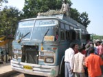 ジャンスィー駅からバスターミナルまでは乗り合いオートリクシャで5RS.。この路線は道がボコボコで乗車率も200%。