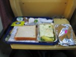 値段は高いが乗車時間は普通特急の約半分で済む。乗るとまず飲料水が配布され、続いて紅茶・クッキー・チョコレートのセットが出てくる。1時間後に←写真の朝食(オムレツ・パン・ジャム・紅茶)が出てきて、その1時間後にもドリンクサービスがある。車両はややくたびれており日本の私鉄特急にも劣るがサービスはなかなか。3時間半の運行で20分到着が遅れたが、これがインドの限界だろう。チャンディーガル駅から市内(BT)までは乗り合いリクシャで1台50ルピーを頭割り。