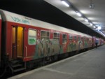 2等座席は向いあわせの6人個室タイプだが、東欧地域の鉄道は需要が少ない為、3人分独占してゴロ寝が出来ることが少なくない。予約時に隣が空いている席を予約したら、案の定横3人分を独占する事ができ「なんちゃって寝台」利用をすることが出来た!定時22:10発が2時間近く遅れたのは愛嬌だが、待っている駅の構内が寒かった・・・。