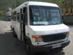 世界遺産の街「コトル」に向かおうと思い、直行バスを探したがウルチニ発は早朝の6時前しか無いと言われる。次の大きな町バールからは何本も出ているとの情報を聞きつけたので、BT外の大通りに停車していた乗合バンでバールに向かうことにした。人数が集まり次第出発らしく、昼飯を食べている間に人数が集まりいい感じに出発した。