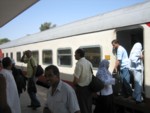 夜は風も入ってきてまぁ快適だが、朝起きると全身に砂が積もっていた。昼は40度を越す車内でひたすら耐えるばかり。中には食堂車があり、簡単な食事のほか、ギン冷えのジュース(コーラ100SD)や水が買える。私はコーラを6回・水を2回購入。食べ物は途中停まる駅で買える。私は猛暑で食欲が無く、移動の間は干しナツメヤシしか食べれなかった。→翌日から下痢に突入。。。