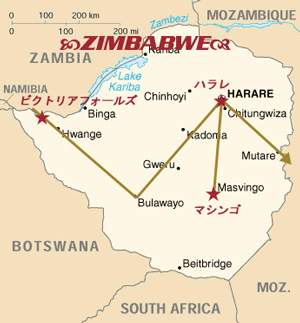 | 12/23 ビクトリアフォールズ 5:00 ⇒⇒⇒ 18:00 ハラレ |