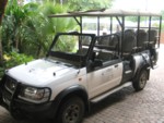 アポ無しでキエラに行ったので、ダメモトでボートサファリの拠点となるチョベサファリロッジに行ったが、その日はあいにくボートが満員だったので乗れず。午前中は9時半〜10時、午後は15時前後がボートサファリの開始時刻となる。15時発だと帰りの船に間に合わないので、そこで近くのサファリ会社があるチョベマリーナロッジという高級ホテルに徒歩で移動。ホテル内のサファリ会社を訪ねると、丁度3分後にゲームサファリg出発するというので飛び込み乗車をする。チョベは出来れば水場に集まるゾウの大群が見れるボートサファリがオススメだが、この際致し方なし。高級ホテル内のサファリ会社だが、ツアー代金はそれ程高くなく、ガイド兼ドライバーもしっかりしていた。途中でドリンクのサービスもあり。