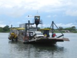 川幅は1km程度で、1艘の船が20分おきくらいにピストン運航している。ザンビア側からいく場合、チケットは往復で買ったほうがよい。18時頃が最終の運行らしいので注意。