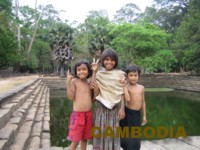 アンコールワット内で遊んでいた子ども達。この後ココの遺跡で泳いでました・・