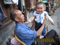 承啓楼の江じいさんとその孫。この赤ん坊なんと生後7ヶ月!でかい!