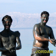 死海で全身泥パック中のヨルダン人。