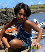 イースター島の港にて。宿の子どもミヒノアちゃん。