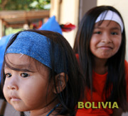 ボリビアのアマゾン地帯ルレナバケの子ども。姉妹でお揃いのバンダナをしています。